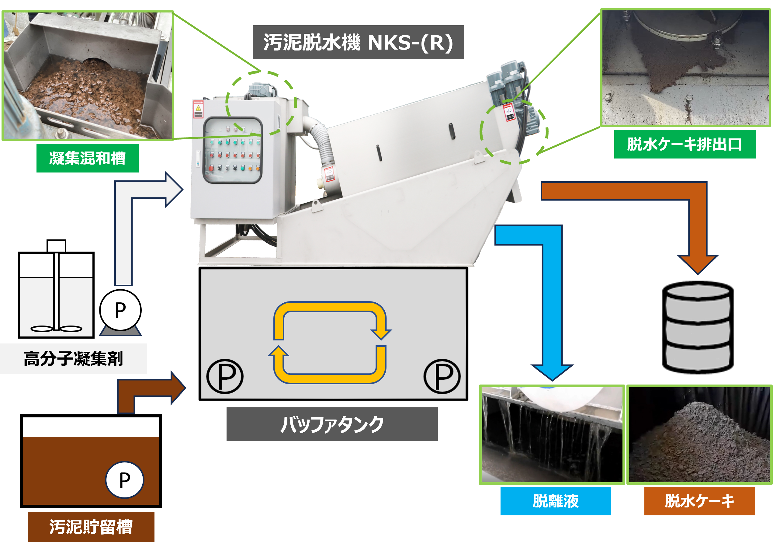 汚泥脱水機NKS-(R)シリーズは、従来型よりも高い脱水性能を実現した
